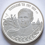в центре – портрет генерал-майора Збиевского Т.И. на фоне Бендерской крепости и солдат, заряжающих ядрами орудие, вверху – надпись «ЗБИЕВСКИЙ Т.И. 1767-1828 г.г.», внизу – изображение лавровой ветви.