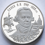 в центре – портрет генерала от кавалерии Палена П.А. на фоне Бендерской крепости и кавалериста, вверху – надпись «ПАЛЕН П.А. 1745-1826 гг.», внизу – изображение лавровой ветви.