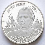 в центре – портрет полковника Матиаса Миллера на фоне Бендерской крепости и фрагмента сражения, вверху – надпись «МАТИАС МИЛЛЕР ... - 1770 г.», внизу – изображение лавровой ветви.