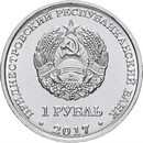 в центре – изображение Государственного герба Приднестровской Молдавской Республики; по кругу – надписи: вверху – «ПРИДНЕСТРОВСКИЙ РЕСПУБЛИКАНСКИЙ БАНК», внизу – год выпуска монеты «2017»; в нижней части под гербом – номинал «1 РУБЛЬ».