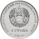в центре – изображение Государственного герба Приднестровской Молдавской Республики; по кругу – надписи: вверху – «ПРИДНЕСТРОВСКИЙ РЕСПУБЛИКАНСКИЙ БАНК», внизу – год выпуска монеты «2015»; в нижней части под гербом – номинал «1 РУБЛЬ».