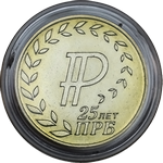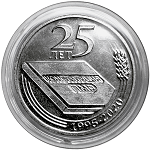 в центре – графическое изображение рубля, обрамлённое колосом; под ним – надпись «25 ЛЕТ ПРБ».