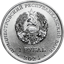 в центре – изображение Государственного герба Приднестровской Молдавской Республики; по кругу – надписи: вверху – «ПРИДНЕСТРОВСКИЙ РЕСПУБЛИКАНСКИЙ БАНК», внизу – год выпуска монеты «2021»; в нижней части под гербом – номинал «1 РУБЛЬ».