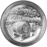 в центре – изображение винных бочек на фоне виноградников, над ними – надпись «KVINT».