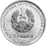 в центре – изображение Государственного герба Приднестровской Молдавской Республики; по кругу – надписи: вверху – «ПРИДНЕСТРОВСКИЙ РЕСПУБЛИКАНСКИЙ БАНК», внизу – год выпуска монеты «2020»; в нижней части под гербом – номинал «3 РУБЛЯ».