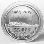 в центре – изображение производственного комплекса ЗАО «Молдавская ГРЭС», над ним – надпись «1964-2019», внизу – надпись «55 ЛЕТ», под ней слева направо – надпись «МОЛДАВСКОЙ ГРЭС».