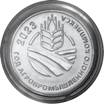 в центре – изображение официального логотипа Года агропромышленного комплекса, сельских территорий и сельского туризма в ПМР, представляющее собой стилизованное изображение колоса, возвышающегося над пашней; слева вверху – надпись «2023»; внизу по кругу – надпись «ГОД АГРОПРОМЫШЛЕННОГО КОМПЛЕКСА».
