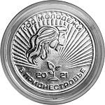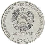в центре – изображение Государственного герба Приднестровской Молдавской Республики; по кругу – надписи: вверху – «ПРИДНЕСТРОВСКИЙ РЕСПУБЛИКАНСКИЙ БАНК», внизу – год выпуска монеты «2021»; в нижней части под гербом – номинал «25 РУБЛЕЙ».