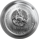 в центре – изображение Государственного герба Приднестровской Молдавской Республики; по кругу – надписи: вверху – «ПРИДНЕСТРОВСКИЙ РЕСПУБЛИКАНСКИЙ БАНК», внизу – год выпуска «2019»; в нижней части под гербом – номинал «25 РУБЛЕЙ».