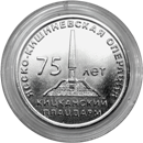 в центре – изображение мемориальной стелы, по обеим сторонам стелы – надписи «75» и «ЛЕТ», вверху по кругу слева направо – надпись «ЯССКО-КИШИНЕВСКОЙ ОПЕРАЦИИ», внизу – надпись «КИЦКАНСКИЙ ПЛАЦДАРМ».