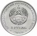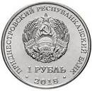 в центре – изображение Государственного герба Приднестровской Молдавской Республики; по кругу – надписи: вверху – «ПРИДНЕСТРОВСКИЙ РЕСПУБЛИКАНСКИЙ БАНК», внизу – год выпуска монеты «2019»; в нижней части под гербом – номинал «1 РУБЛЬ».