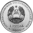 в центре – изображение Государственного герба Приднестровской Молдавской Республики; по кругу – надписи: вверху – «ПРИДНЕСТРОВСКИЙ РЕСПУБЛИКАНСКИЙ БАНК», внизу – год выпуска монеты «2023»; в нижней части под гербом – номинал «1 РУБЛЬ».