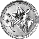 в центре – стилизованное изображение лилии, вверху – надпись «КРАСНАЯ КНИГА ПРИДНЕСТРОВЬЯ»; внизу – надпись «ЛИЛИЯ «ЦАРСКИЕ КУДРИ» – LILIUM MARTAGON.