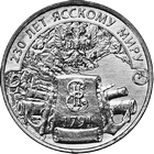 в центре – портрет российской императрицы Екатерины II; справа – карта Таврической губернии, ниже стилизованное изображение листа бумаги, символизирующего договор; вверху надписи: по кругу – «КЮЧУК-КАЙНАРДЖИЙСКИЙ МИРНЫЙ ДОГОВОР», ниже в две строки – «250 ЛЕТ».