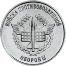 в центре – изображение эмблемы в виде двух стрел и зенитного снаряда внутри дубового венка; по кругу надписи: вверху – «ВОЙСКА ПРОТИВОВОЗДУШНОЙ», внизу – «ОБОРОНЫ».