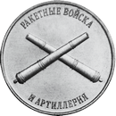 в центре – изображение эмблемы в виде двух скрещённых по диагонали орудийных стволов; по кругу надписи: вверху – «РАКЕТНЫЕ ВОЙСКА», внизу – «И АРТИЛЛЕРИЯ».
