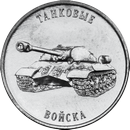в центре – изображение эмблемы в виде танка; по кругу надписи: вверху – «ТАНКОВЫЕ», внизу – «ВОЙСКА».