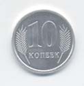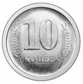 10 КОПЕЕК - сплав алюминиевый. Диаметр 20 мм. Гурт  гладкий. Цвет серебристый.