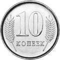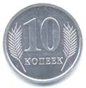 На лицевой стороне монеты номиналом 10 копеек в центре: расположен государственный герб ПМР, обрамленный по кругу надписью "Приднестровская Молдавская Республика". Под гербом расположен год образца "2000".