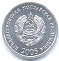 На лицевой стороне монеты номиналом 25 копеек: изображен герб Приднестровской Молдавской Республики, по кругу надпись “ПРИДНЕСТРОВСКАЯ МОЛДАВСКАЯ РЕСПУБЛИКА”, внизу год образца - “2005”.