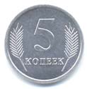 На лицевой стороне монеты номиналом 5 копеек: в центре расположен государственный герб ПМР, обрамленный по кругу надписью "Приднестровская Молдавская Республика". Под гербом расположен год образца "2000".