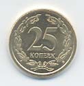 На лицевой стороне монеты номиналом 25 копеек: в центре расположен государственный герб ПМР, обрамленный по кругу надписью "Приднестровская Молдавская Республика". Под гербом расположен год образца "2002".