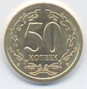 На лицевой стороне монеты номиналом 50 копеек: в центре расположен государственный герб ПМР, обрамленный по кругу надписью "Приднестровская Молдавская Республика". Под гербом расположен год образца "2000".