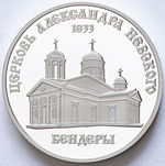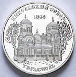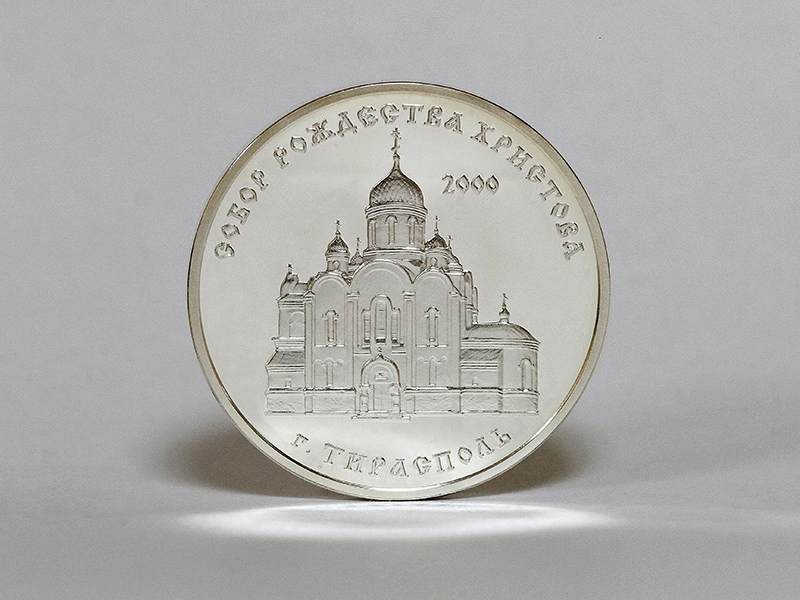 в центре – изображение собора Рождества Христова, над ним – надпись: «2000»; по кругу – надписи: вверху – «СОБОР РОЖДЕСТВА ХРИСТОВА», внизу – «г. ТИРАСПОЛЬ».