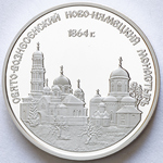 в центре – изображение монастыря, над ним надпись «1864 г.»; вверху по кругу слева направо – надпись «СВЯТО-ВОЗНЕСЕНСКИЙ НОВО-НЯМЕЦКИЙ МОНАСТЫРЬ».