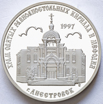 в центре – изображение Кирилло-Мефодиевской церкви, над ним – надпись «1997»; по кругу – надписи: вверху – «ХРАМ СВЯТЫХ РАВНОАПОСТОЛЬНЫХ КИРИЛЛА И МЕФОДИЯ», внизу – «г. ДНЕСТРОВСК».