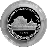в центре – изображение здания епархиального управления Тираспольско-Дубоссарской епархии, Собора Рождества Христова; вверху по кругу – надпись «ТИРАСПОЛЬСКО - ДУБОССАРСКАЯ ЕПАРХИЯ»; внизу – надпись «25 ЛЕТ».