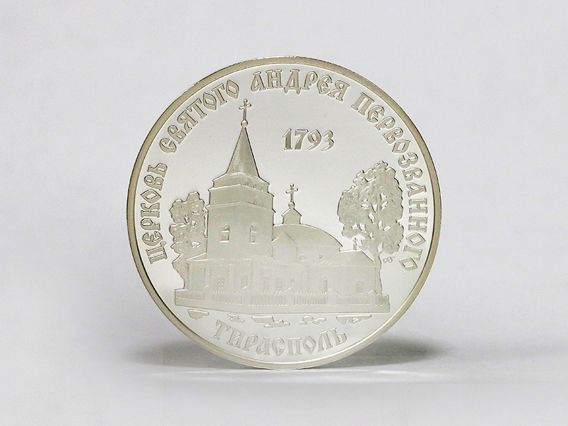 в центре – изображение церкви святого Андрея Первозванного, над ним – надпись: «1793»; по кругу – надписи: вверху – «ЦЕРКОВЬ СВЯТОГО АНДРЕЯ ПЕРВОЗВАННОГО», внизу – «ТИРАСПОЛЬ».