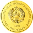 в центре – изображение Государственного герба Приднестровской Молдавской Республики; по кругу – надписи: вверху – «ПРИДНЕСТРОВСКИЙ РЕСПУБЛИКАНСКИЙ БАНК», внизу – «1000 РУБЛЕЙ»; в нижней части под гербом – год выпуска монеты «2001».
