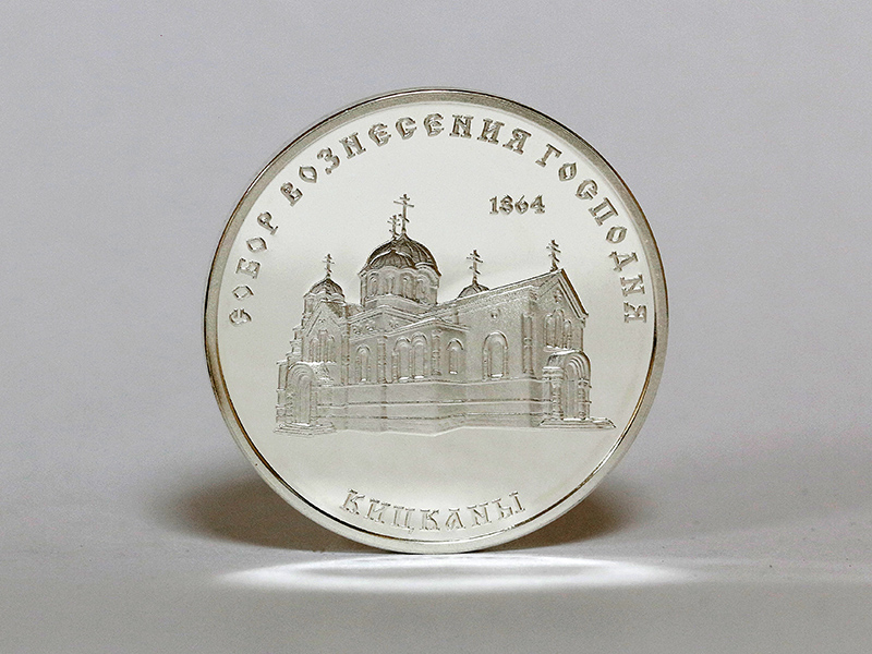 в центре – изображение собора Вознесения Господня, над ним – надпись: «1864»; по кругу – надписи: вверху – «СОБОР ВОЗНЕСЕНИЯ ГОСПОДНЯ», внизу – «КИЦКАНЫ».