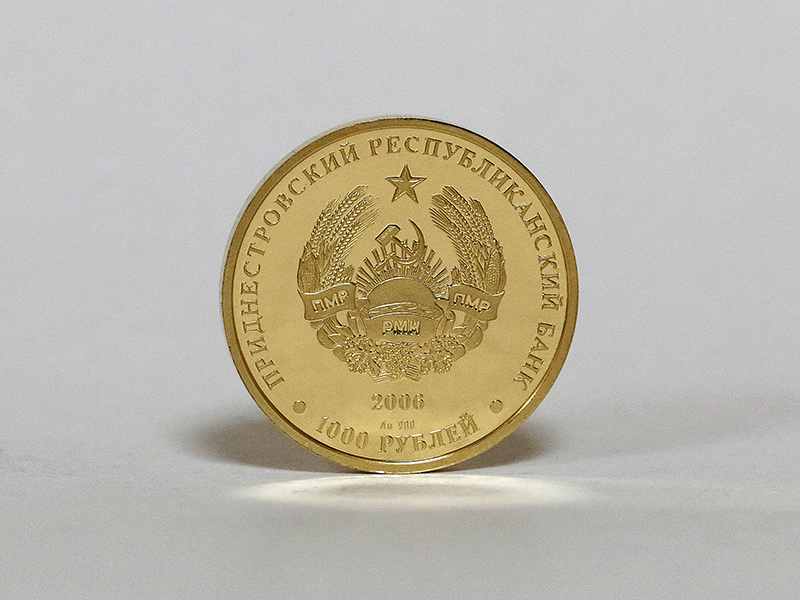 в центре – изображение Государственного герба Приднестровской Молдавской Республики; по кругу – надписи: вверху – «ПРИДНЕСТРОВСКИЙ РЕСПУБЛИКАНСКИЙ БАНК», внизу – «1000 РУБЛЕЙ»; в нижней части под гербом – год выпуска монеты «2006», ниже – обозначение металла, проба сплава.