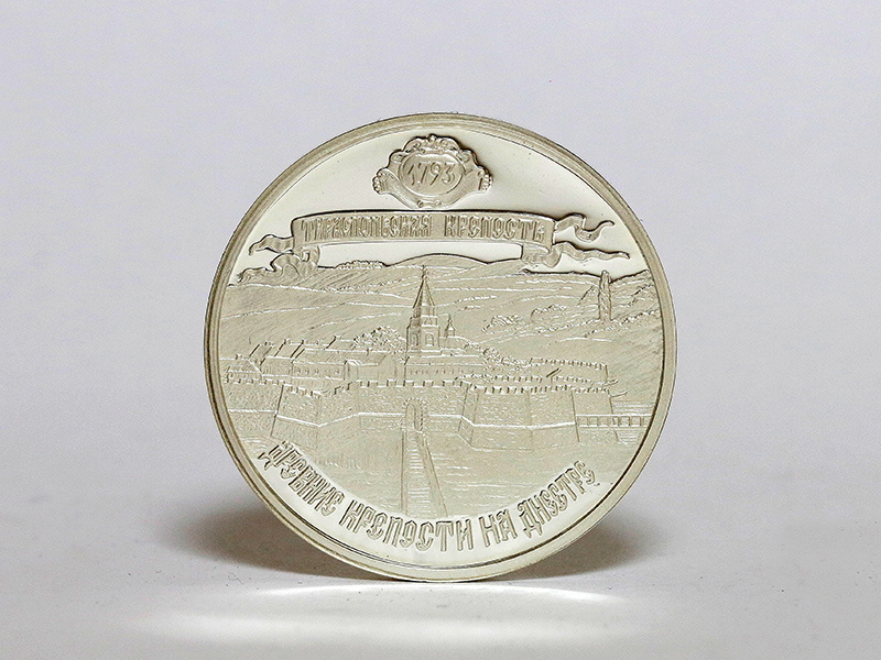 в центре – изображение Тираспольской крепости; вверху – стилизованная розетка, внутри которой указан год основания крепости: «1793», ниже – стилизованная лента с надписью: «ТИРАСПОЛЬСКАЯ КРЕПОСТЬ»; внизу по кругу – надпись: «ДРЕВНИЕ КРЕПОСТИ НА ДНЕСТРЕ».