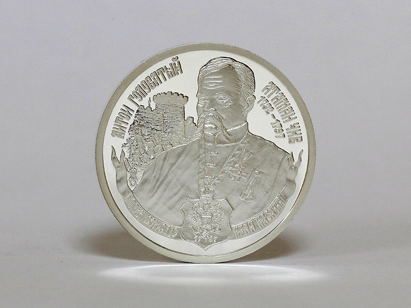 в центре – крупным планом портрет кошевого атамана ЧКВ Антона Головатого на фоне крепости и атакующих её группы казаков. Вверху по кругу – надписи: слева – «АНТОН ГОЛОВАТЫЙ», справа – «АТАМАН ЧКВ», ниже – годы жизни: «1732-1797». Внизу по кругу, слева направо – надписи на стилизованной ленте: «ПРИДНЕСТРОВЬЕ», «КРАЙ КАЗАЧИЙ», между ними посередине – изображение герба Черноморского казачьего войска с годом образования – «1787».