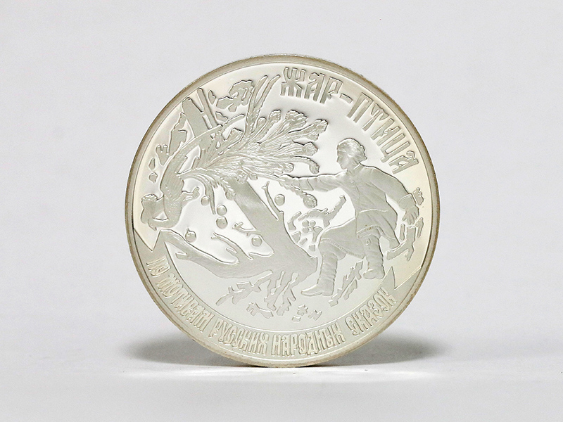 В основу темы данной монеты положен сюжет русской народной сказки «Об Иване-царевиче, жар-птице и сером волке». Сказки являются особенностью русского фольклора, сказочное творчество подразделяется на: сказки-волшебные истории, сказки о животных, бытовые сказки. Среди множества русских народных сказок можно представить: «Волшебное кольцо», «Сивка-бурка», «Волк и семеро козлят», «Теремок», «Храбрый баран» и множество других.