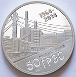 в центре – изображение производственного комплекса ЗАО «Молдавская ГРЭС», над ним – надпись «1964-2014», внизу – надпись «50 ЛЕТ МОЛДАВСКОЙ ГРЭС».