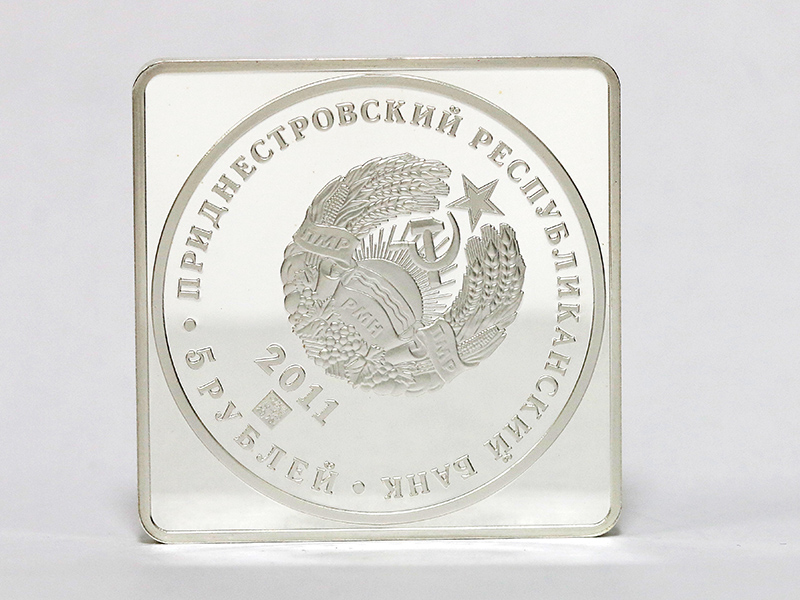 "Summer". The reverse: : At centre an image in a circle of a Years landscape in colour. From left to right inscription "ВРЕМЕНА ГОДА В ПРИДНЕСТРОВЬЕ" (SEASONS IN Pridnestrovie). Below inscription "ВЕСНА" (SPRING). On angles of guadrate - image vernal flower. "Autumn". Denomination: 5 roubles The obverse: At centre - image of the State Emblem Pridnestrovian Moldavian Republic. On a circle of an inscription in Russian: above - "ПРИДНЕСТРОВСКИЙ РЕСПУБЛИКАНСКИЙ БАНК" (Pridnestrovian REPUBLICAN BANK), below - "5 РУБЛЕЙ" (5 ROUBLES). At the bottom under the arms a year issue coins - "2011", trade mark of the manufacturer, label of metal, test of an alloy, mass. The reverse: At centre an image in a circle of a Years landscape in colour. From left to right inscription "ВРЕМЕНА ГОДА В ПРИДНЕСТРОВЬЕ" (SEASONS IN Pridnestrovie). Below inscription "ОСЕНЬ" (AUTUMN). On angles of guadrate - image an autumnal leaf. The obverse: At centre - image of the State Emblem Pridnestrovian Moldavian Republic. On a circle of an inscription in Russian: above - "ПРИДНЕСТРОВСКИЙ РЕСПУБЛИКАНСКИЙ БАНК" (Pridnestrovian REPUBLICAN BANK), below - "5 РУБЛЕЙ" (5 ROUBLES). At the bottom under the arms a year issue coins - "2011", trade mark of the manufacturer, label of metal, test of an alloy, mass. The reverse: At centre an image in a circle of a Years landscape in colour. From left to right inscription "ВРЕМЕНА ГОДА В ПРИДНЕСТРОВЬЕ" (SEASONS IN Pridnestrovie). Below inscription "ЗИМА" (WINTER). On angles of guadrate - image snow-flake. |