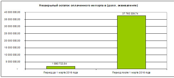 * Как видно из графика 2, сумма незакрытого импорта возросла до 3,4 млн долларов США. Ещё раз наглядно покажем, как выглядит динамика неосуществленного, но оплаченного импорта до кризиса и после.