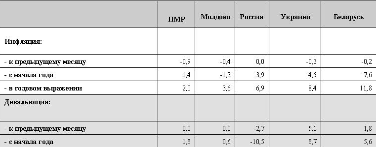 В текущем году на потребительском рынке Приднестровья, несмотря на возросшие риски, сохраняется относительная стабильная ситуация. Так, по итогам 8 месяцев 2016 года инфляция сложилась на уровне 1,4%, при этом, начиная с июля, фиксируется дефляция в пределах 1,4% (июль) и 0,9% (август). Среднемесячный рост цен не превышал 0,2%. Следует отметить, что зафиксированные темпы были ниже, чем в большинстве стран – основных торговых партнёров, за исключением Молдовы (табл.). Так, в России за январь-август инфляция сложилась в пределах 3,9%, в Украине – 4,5%, в Беларуси – 7,6%. Так же, как и в 2015 году, по группе продуктов питания наблюдалась дефляция – 1,0% (в январе-августе предыдущего года – 7,2%). Если продовольственные товары с преимущественно рыночным характером ценообразования выросли в цене на 4,8%, то группа продуктов питания, цены на которые формируются под воздействием сезонного фактора, подешевела на 7,1%. В разрезе отдельных товарных групп необходимо выделить удорожание сахара – на 9,6%, мяса и мясопродуктов – на 8,1%, муки – на 4,7%, масел и жиров – на 3,7%. В то же время, нивелирующее воздействие на групповой индекс оказывало снижение стоимости плодоовощной продукции (-20,1%), яиц (-12,3%). В отличие от ситуации, сложившейся по итогам января-августа 2015 года, в сфере услуг отмечалось значительное уменьшение инфляционного давления – на 4,7 п.п. до 1,7%. Это стало следствием гораздо более умеренной динамики в сегменте административных услуг: +1,7% против +6,8%. Принятые на государственном уровне решения о заморозке тарифов по ряду ключевых направлений, прежде всего на услуги ЖКХ, оказали существенное влияние на формирование вектора итогового показателя. Среди основных компонент сводного индекса потребительских цен наибольшее подорожание отмечалось по группе непродовольственных товаров: +3,8% по итогам 8 месяцев текущего года, в том числе, за август – +0,2%. При этом преимущественно выросли в цене импортируемые товары, такие как электротовары (+12,5%), хозяйственные товары (+6,7%), вычислительная техника (+6,2%), стройматериалы (+9,1%). Максимальный прирост цен фиксировался по группе «табачные изделия» – +23,1%. Во многом это коррелирует с динамикой цен на аналогичные позиции в ряде стран Содружества, с которыми Приднестровье поддерживает тесные торговые отношения. Несмотря на сохраняющуюся с марта нестабильность на валютном рынке, итоговый уровень инфляции в годовом выражении сложился на отметке 2,0%, что соответствует прогнозным ориентирам. Следует учитывать, что в розничном сегменте фактическая стоимость по многим товарным позициям, начиная с марта-апреля, формируется исходя из курсового соотношения доллар/рубль на уровне 14-15 руб./долл. США, при том, что официальный курс зафиксирован на уровне 11,3 руб./долл. США. То есть, основные корректировки, прежде всего в секторе непродовольственных товаров, связанные со сложившимся разрывом между официальным и неофициальным валютными курсами, уже произошли. Таким образом, не оправдались прогнозы отдельных экспертов, которые высказывали мнение, что установление рыночного курса по твёрдым валютам в кредитных организациях в середине августа вызовет резкий рост цен на потребительском рынке. Уровень инфляции и девальвации по странам по итогам августа 2016 года, %