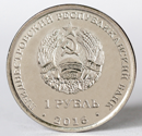 Аверс монеты: в центре – изображение Государственного герба Приднестровской Молдавской Республики; по кругу – надписи: вверху ­­­­­– «ПРИДНЕСТРОВСКИЙ РЕСПУБЛИКАНСКИЙ БАНК», внизу – год выпуска монеты «2016»; в нижней части под гербом – номинал «1 РУБЛЬ».