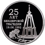 С 9 июня 2017 года Приднестровский республиканский банк вводит в обращение памятные монеты: Памятная серебряная монета «25 лет Бендерской трагедии» имеет идентификационный сертификат (паспорт), упакована в прозрачную капсулу и представлена в футляре. Характеристика монеты: Номинал: 10 рублей Описание монеты: Аверс монеты: в центре – изображение Государственного герба Приднестровской Молдавской Республики; по кругу – надписи: вверху – «ПРИДНЕСТРОВСКИЙ РЕСПУБЛИКАНСКИЙ БАНК», внизу – «10 РУБЛЕЙ»; в нижней части под гербом – год выпуска монеты «2017», ниже – содержание химически чистого металла в граммах, слева – логотип изготовителя, государственное пробирное клеймо, справа – обозначение металла, проба сплава. Реверс монеты: в центре – памятник, исполненный в виде стилизованной открытой часовни; справа – надпись «25 ЛЕТ БЕНДЕРСКОЙ ТРАГЕДИИ 19.06.1992», внизу – две гвоздики. Памятная монета из недрагоценных металлов «25 лет Бендерской трагедии»: Характеристика монеты: Номинал: 1 рубль Описание монеты: Аверс монеты: в центре – изображение Государственного герба Приднестровской Молдавской Республики; по кругу – надписи: вверху – «ПРИДНЕСТРОВСКИЙ РЕСПУБЛИКАНСКИЙ БАНК», внизу – год выпуска монеты «2017»; в нижней части под гербом – номинал «1 РУБЛЬ». Реверс монеты: в центре – памятник, исполненный в виде стилизованной открытой часовни; справа – надпись «25 ЛЕТ БЕНДЕРСКОЙ ТРАГЕДИИ 19.06.1992», внизу – две гвоздики. Часть памятных монет из недрагоценных металлов будет помещена в упаковку-буклет. Памятные монеты Приднестровского республиканского банка из драгоценных и недрагоценных металлов образца 2017 года являются законным средством обращения и платежа на территории Приднестровской Молдавской Республики, обязательны к приему по нарицательной стоимости во все виды платежей всеми организациями независимо от формы собственности и сферы деятельности. |