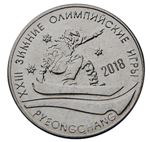 С 9 февраля 2018 года Приднестровский республиканский банк вводит в обращение памятные монеты из недрагоценных металлов достоинством 1 рубль «ХХIII Зимние Олимпийские игры в Южной Корее» серии «Спорт». Памятные монеты являются денежными знаками Приднестровского республиканского банка, выступают средством обращения и платежа на территории Приднестровской Молдавской Республики и принимаются по их номинальной стоимости. Характеристика монеты: Номинал: 1 рубль Описание монеты: Аверс монеты: в центре – изображение Государственного герба Приднестровской Молдавской Республики; по кругу – надписи: вверху – «ПРИДНЕСТРОВСКИЙ РЕСПУБЛИКАНСКИЙ БАНК», внизу – «1 РУБЛЬ»; в нижней части под гербом – «2017». Реверс монеты: в центре – стилизованное изображение сноубордиста; справа – надпись «2018»; вверху: слева направо – надпись «ХХIII ЗИМНИЕ ОЛИМПИЙСКИЕ ИГРЫ», внизу – надпись «PYEONGCHANG». |
