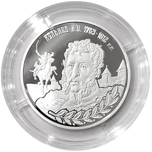 Описание монеты: Аверс монеты: в центре – изображение Государственного герба Приднестровской Молдавской Республики; по кругу – надписи: вверху – «ПРИДНЕСТРОВСКИЙ РЕСПУБЛИКАНСКИЙ БАНК», внизу – «10 РУБЛЕЙ»; в нижней части под гербом – год выпуска монеты «2018», ниже – содержание химически чистого металла в граммах, слева – логотип изготовителя, государственное пробирное клеймо, справа – обозначение металла, проба сплава. Реверс монеты: в центре – портрет генерал-майора Кульнева Я.П. на фоне Бендерской крепости и всадника драгунского полка, вверху – надпись «КУЛЬНЕВ Я.П. 1763-1812 г.г.», внизу – изображение лавровой ветви. |