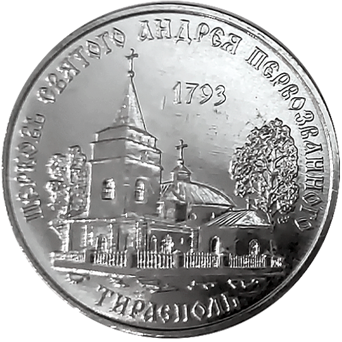 С 21 сентября 2018 года вводятся в обращение памятные монеты Приднестровского республиканского банка из недрагоценных металлов достоинством 1 рубль «Церковь св. Андрея Первозванного г. Тирасполь» серии «Православные храмы Приднестровья». Памятные монеты являются денежными знаками Приднестровского республиканского банка, выступают средством обращения и платежа на территории Приднестровской Молдавской Республики и принимаются по их номинальной стоимости. Характеристика монеты: