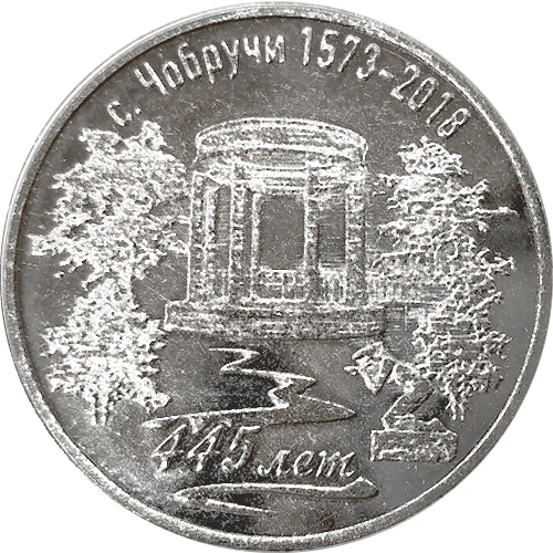 С 28 сентября 2018 года вводятся в обращение памятные монеты Приднестровского республиканского банка из недрагоценных металлов достоинством 3 рубля «445 лет с. Чобручи» серии «Приднестровье – край родной». Памятные монеты являются денежными знаками Приднестровского республиканского банка, выступают средством обращения и платежа на территории Приднестровской Молдавской Республики и принимаются по их номинальной стоимости. Характеристика монеты: