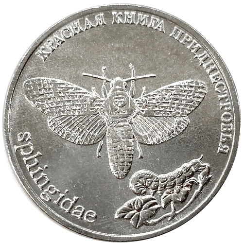 С 26 октября 2018 года вводятся в обращение памятные монеты Приднестровского республиканского банка из недрагоценных металлов достоинством 1 рубль «Бабочка Адамова голова» серии «Красная книга Приднестровья. Фауна». Памятные монеты являются денежными знаками Приднестровского республиканского банка, выступают средством обращения и платежа на территории Приднестровской Молдавской Республики и принимаются по их номинальной стоимости. Характеристика монеты:
