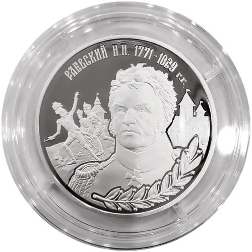 С 14 ноября 2018 года в обращение вводится памятная серебряная монета Приднестровского республиканского банка достоинством 10 рублей «Генерал от кавалерии Раевский Н.Н.» серии «Выдающиеся русские полководцы и военачальники в истории Приднестровья». Памятная монета является денежным знаком Приднестровского республиканского банка, выступает средством обращения и платежа на территории Приднестровской Молдавской Республики и принимается по ее номинальной стоимости. Каждая монета имеет идентификационный сертификат (паспорт), упакована в прозрачную капсулу и представлена в футляре. Характеристика монеты: